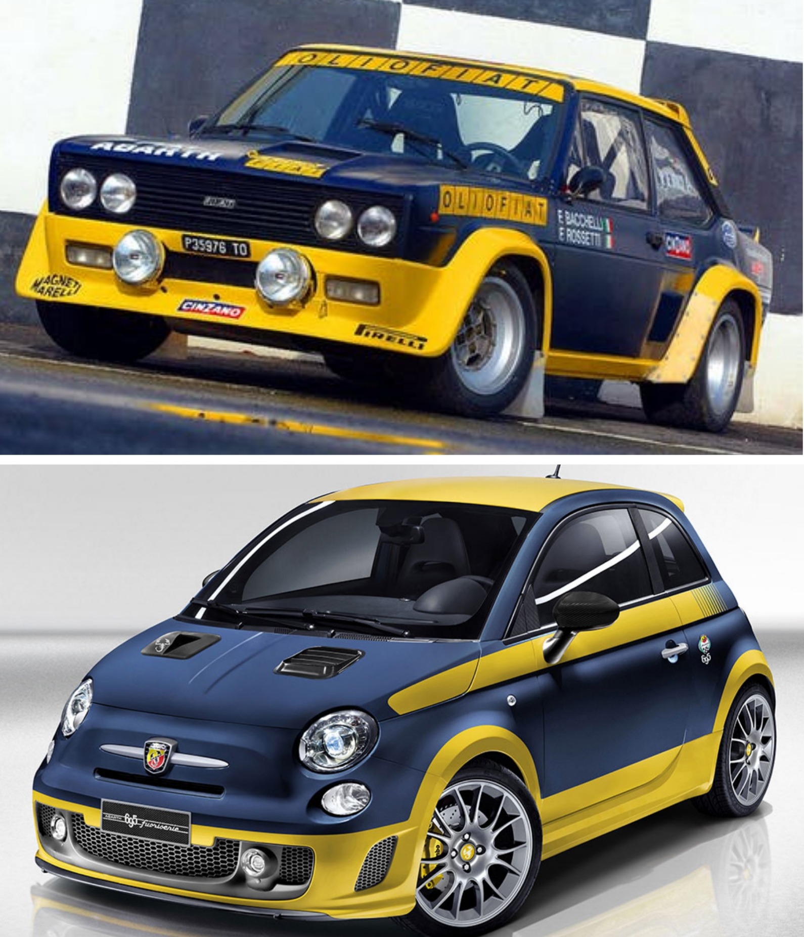 Questa 695 Abarth coi colori olio Fiat non mi dispiace, peccato quella striscia gialla sulla fiancata.Tempo fa, ci fu anche questa a tributo della 131.