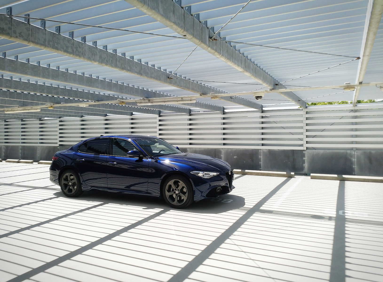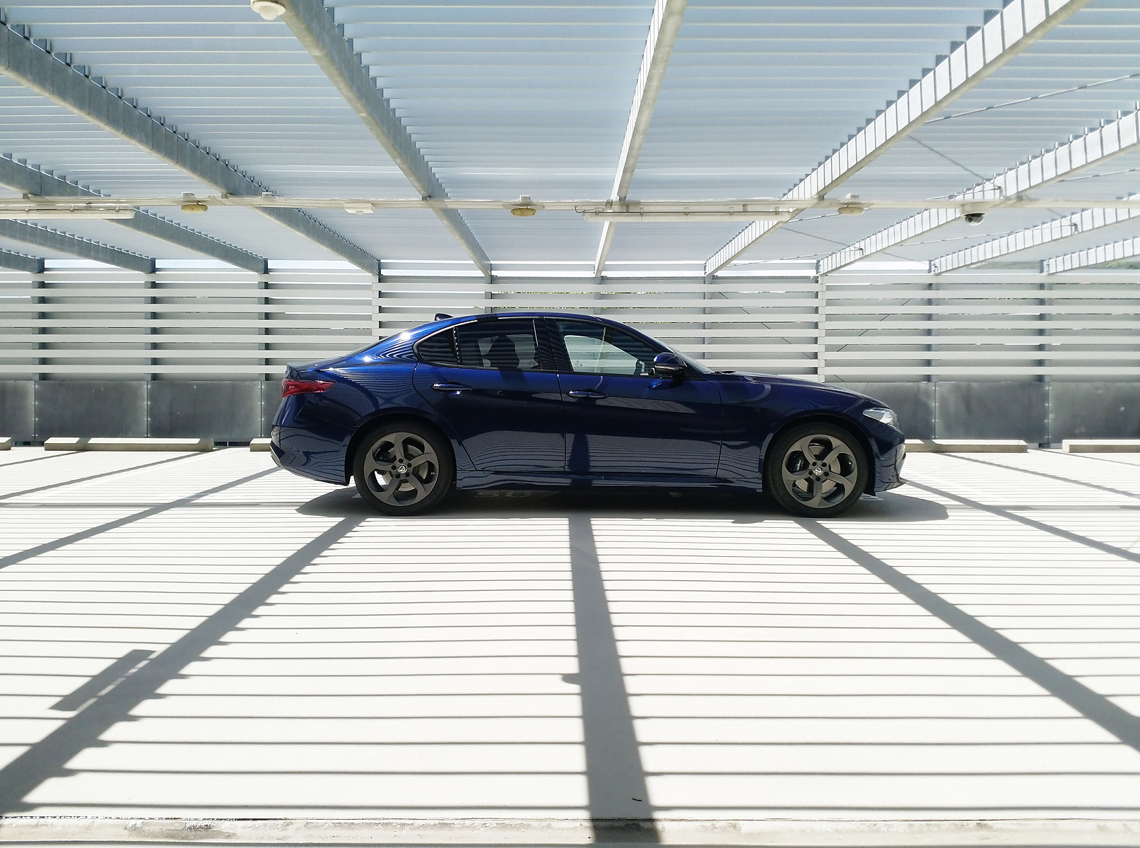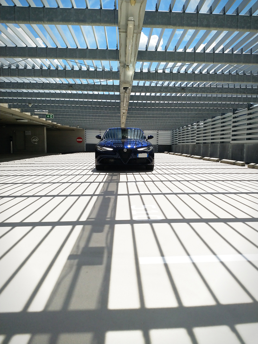 Pur usando il telefono direi che sei riuscito a valorizzare sia la macchina ed anche il posto, dato che immagino dal vivo appare sicuramente meno "fotogenico". Invece assieme alla tua auto, mi da quasi un idea di movimento grazie a tutte le listarelle orizzontali e trasversali.