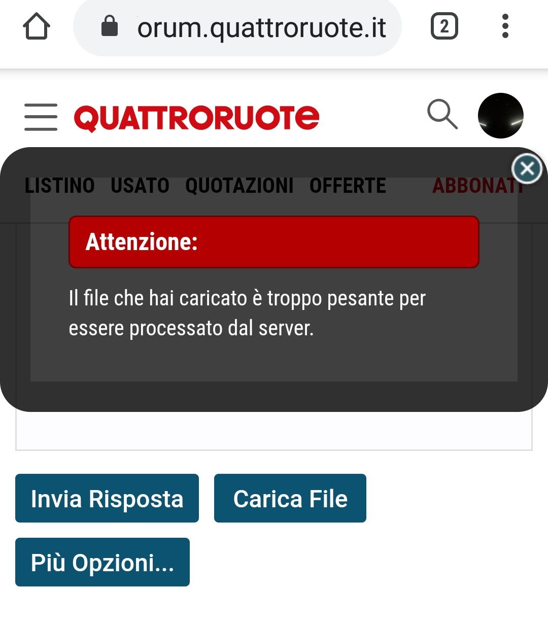 no, non riesco proprio a trovare il modo per caricare...Ma ti da un errore o no? Ad esempio a me caricando un file da 2.38MB dice questo