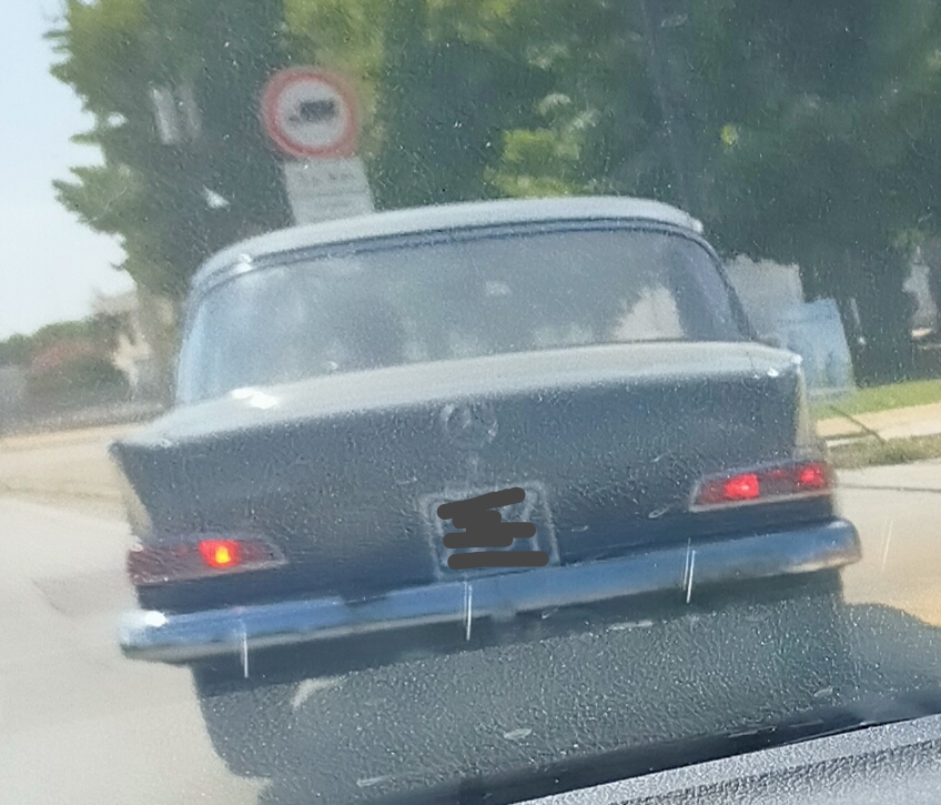Mercedes 190D anni '60. A giudicare dallo stato dell'auto e dalla linea di chi la guidava, direi che ci è invecchiato sopra ....