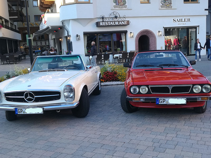 Anche stasera vicino a casa una bella coppietta: Mercedes Pagoda e Lancia beta 2000