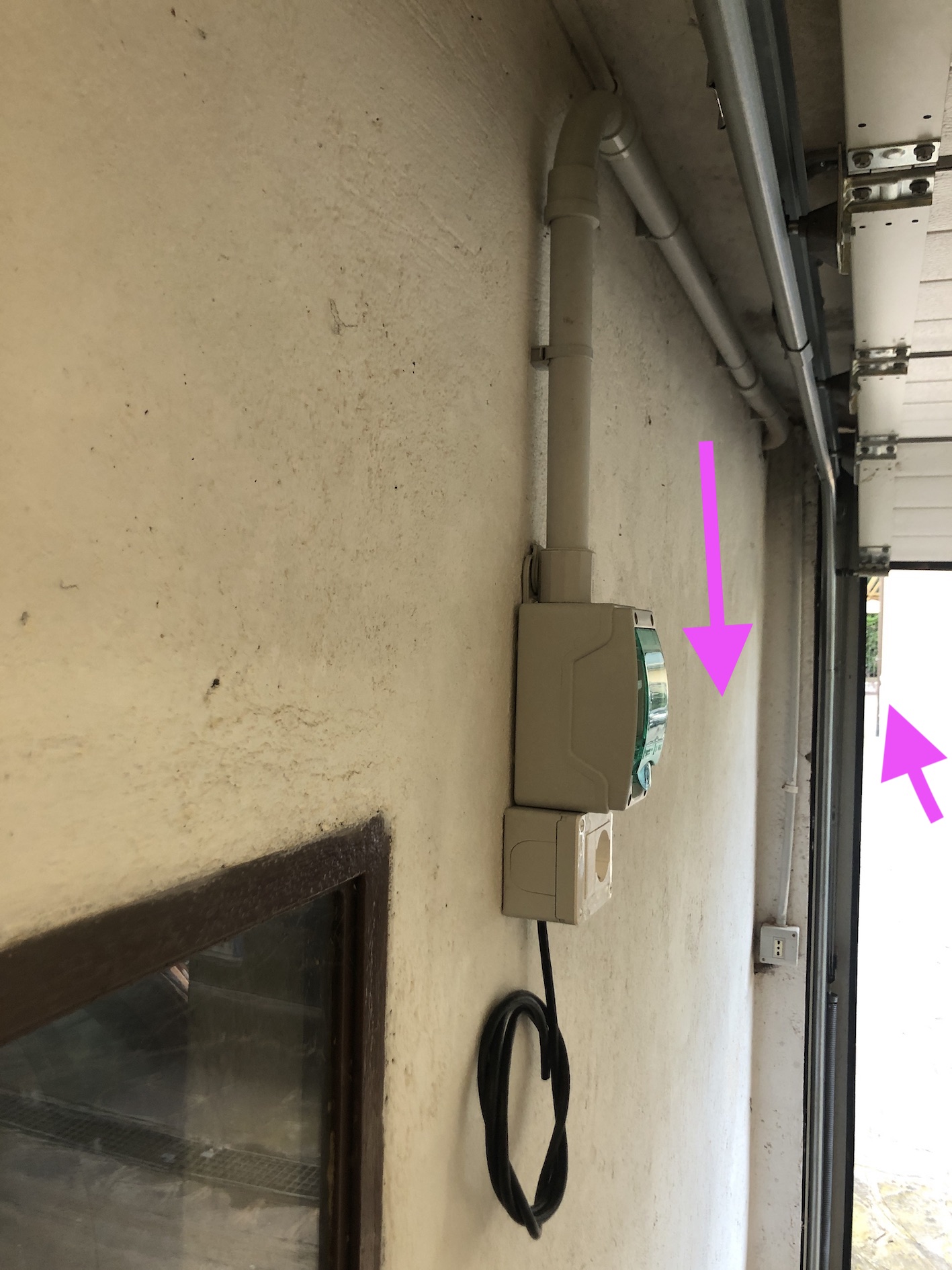 Queste di seguito sono alcune foto dellimpianto, e più precisamente del relèdi sucurezza appena fuori il contatore, e di quello installato nel box. Con la freccia viola e il cerchio sul muro indicano dove verrà messa la wallbox, mentre l'altra freccia che indica una zona lotana verde è dove risiedono i contatori , ovvero a 35 mt. di distanza.Vedi l'allegato 33337 Vedi l'allegato 33338 Vedi l'allegato 33339