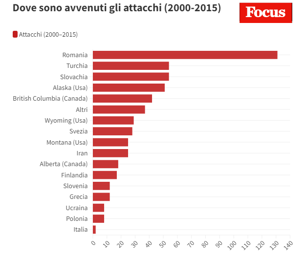 Il grafico e il link però si riferiscono solo agli attacchi da parte di orsi bruni.
