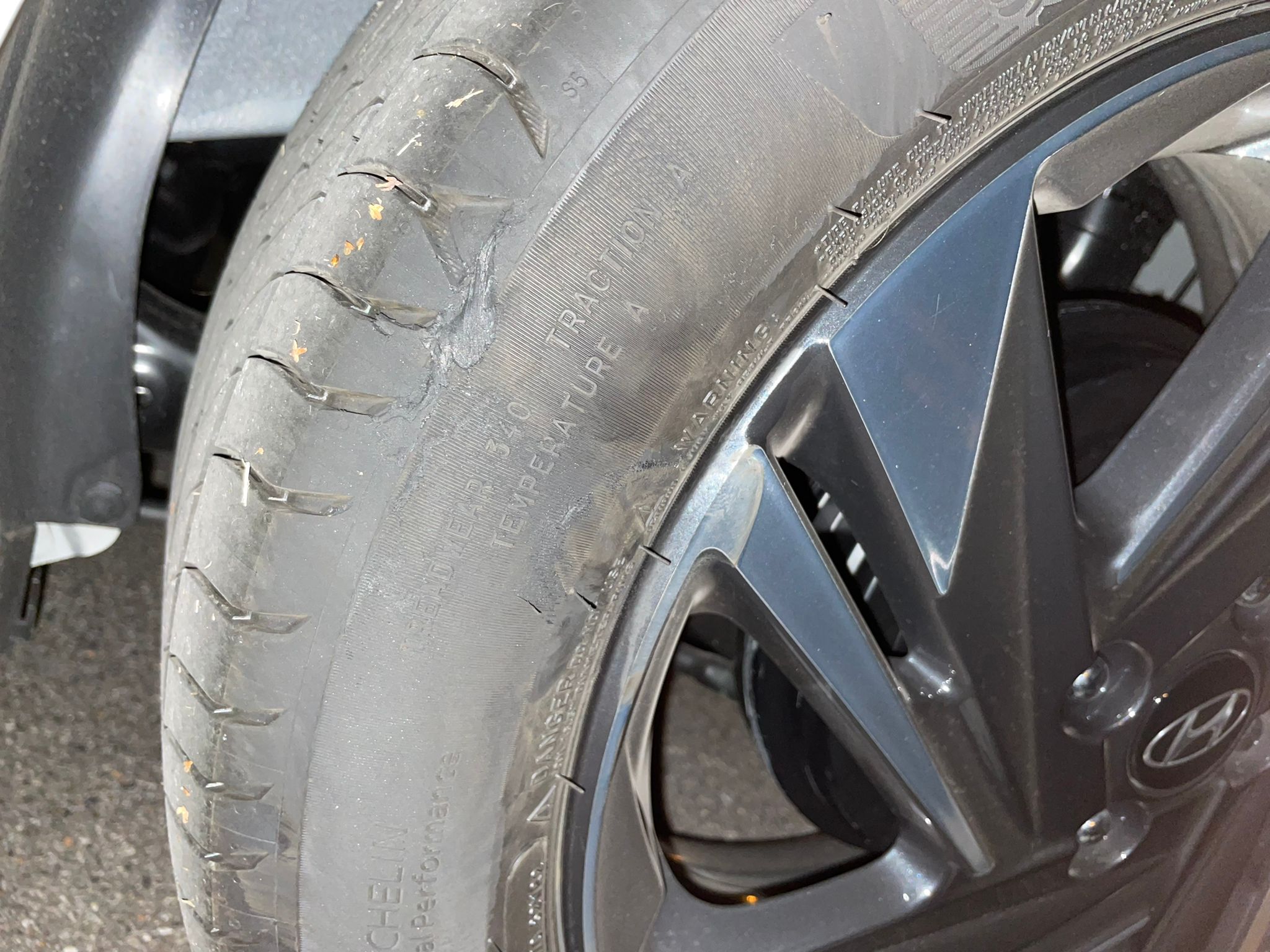 Ieri sera mentre giravo tranquillo con la mia auto nuova di appena 5 giorni ( nuova i20) . In centro paese ho preso un marciapiede con il lato pneumatico ( michelin primacy 4) ( tra la spalla e il battistrada) alla velocità di circa 40/50 km/h. Sterzo molto sensibile, macchina nuova provenendo da utilizzo di 4 anni di una vecchia Nissan Pixo con lo sterzo durissimo, ho stretto troppo la curva e la ruota posteriore sinistra ha preso in pieno il caro e odiato marciapiede. Nell'utilizzo successivo nessun problema e nessun rumore particolare la gomma si è raschiata un poi vi allego poi la foto. La mia domanda è : secondo voi va cambiata a priori lo pneumatico? Può essere successo qualcosa all'asse posteriore?