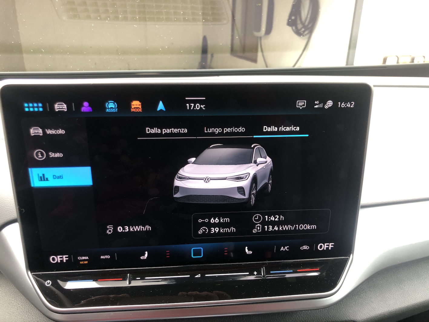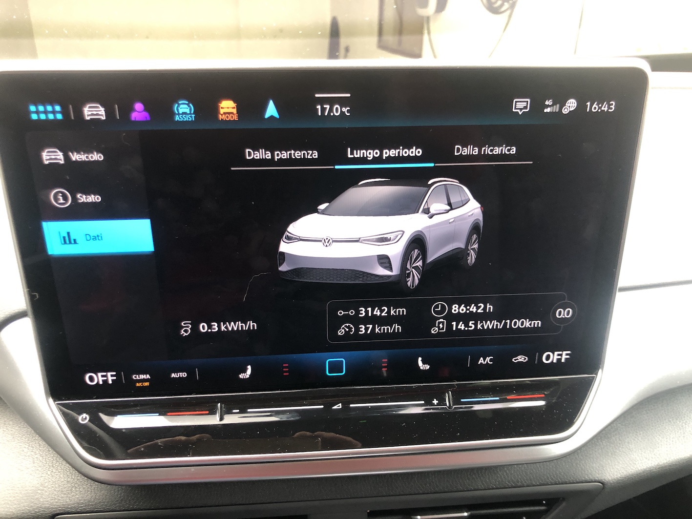 Questo perchè dipende da molti fattori quali : stile di guida, e non parlo se guidi come un nonno che porta il nipotino a scuola o meno. Traffico : dato che una elettrica è si un'auto tecnologica ma non vola quindi devi seguire a tuo malgrado il flusso che ti trovi davanti. Capire come ragiona l'auto che guidi e saper dagli ragione : avendo la guida predittiva integrata con il navigatore anche se non lo stai necessariamente usando, che puoi comunque ignorare, ti indica quando alzare il piede dell' acceleratore e al momento giusto individuando per esempio una rotonda, uno stop, o un veicolo che hai raggiunto che va più piano automaticamete rallenta, senza usare i freni fisici, incaremando una discreta energia per rigenarazione. Se non lo fai per quell'azione si esclude automaticamente ed è come se avresti in mano una qualsiasi termica. La differenza temporale tra le 2 azioni ? Nessuna, la differenza sostanziale sta nell'energia che sei riuscito ad incamerare cosa che nella seconda strategia incameri in piccola parte frenando fisicamente. Moltiplica questa energia per tutto il viaggio e alla fine fai cifra. Nei post della vacanza in Trentino troverai la mia esperienza fatta da Corvara in Badia a Brunico, 40 km circa, dove nel viaggio di andata ho consumato 0, zero, ovvero percentuale di partenza esattamente uguale alla percentuale di arrivo seguendo naturalemnte il traffico, ma sfruttando la rigenerazione. Tempo fa in una gita domenicale con amici quando avevo il Rav in un tratto del ritorno di statale/provinciale, circa 45 km, ho fatto provare il suv ad un mio amico a cui era interessato all'acquisto del modello nuovo. Gli ho azzerato il Cdb e gli ho spiegato a grandi linee come lavorara la macchina e il gli accorgimenti da tenere. In quei 45 km ha tenuto una media consumo molto più alta della mia fatto dopo fino al rientro a casa pur mostrando una netta velocità media più bassa. Se hai un'ibrida e la sai usare ottienendo consumi interessanti pur non comparendo nella lista degli ostacoli giornalieri circoalnti per strada e stai sicuro che a quelle medie di 4R con una elettrica starai almeno a seconda della tipologia di strada dal 20 al 30% più basso. Ecco qui sotto 3 medie che ho appena fotograto per te dato che ho spostato l'auto in garage infatti sullo sfondo si vede la wallbox, una fatta oggi per andare ad un negozio poco lontano, una da quando ho caricato l'ultima volta, e quello totate da quando l'ho comprata che non ho mai azzerato.