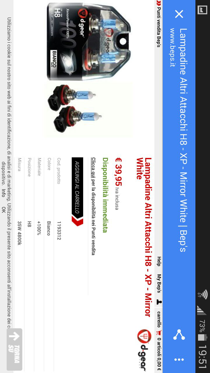 Comprai un coppia di lampadine effetto xenon quindi luce bianca. Ma purtroppo non andavano bene,e mi hanno quasi sciolto la parabola e l'attacco della lampadina. Al punto che mi faceva la condensa. Adesso sto cambiando il fendinebbia completo.