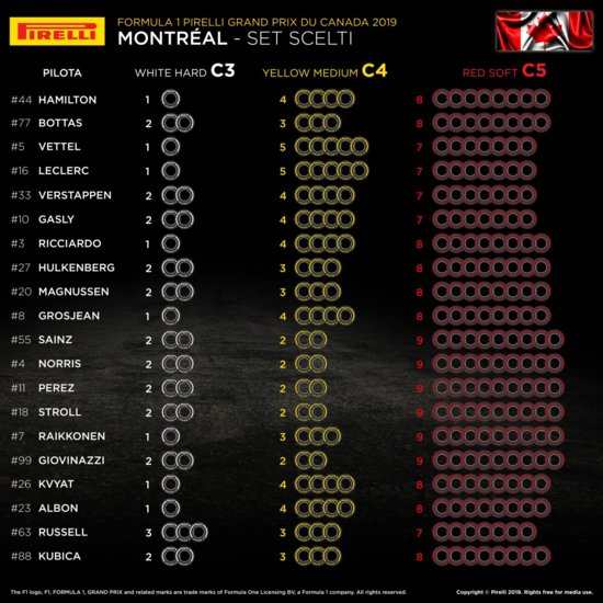 Allego le scelte delle gomme, perche' quella postata in precedenza era del 2018 :