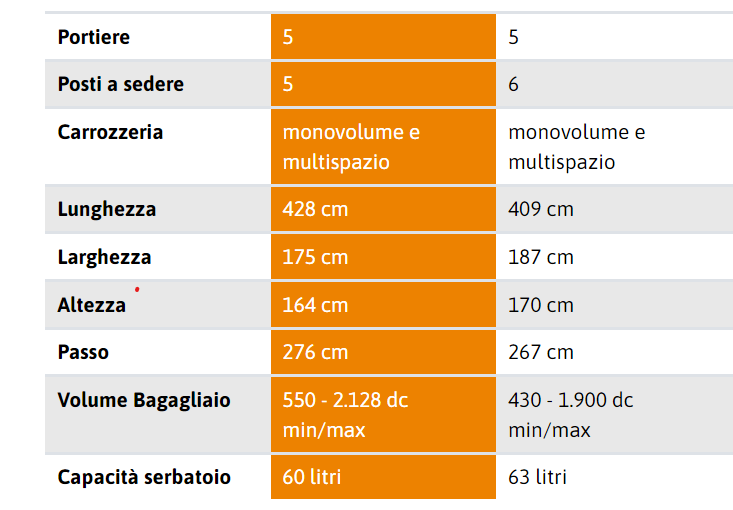 Esatto: 550 lt alla cappelliera ed in configurazione standard, cioè sedili tutti arretrati.Le dimensioni sono queste, in arancio la picasso ed a fianco la multipla